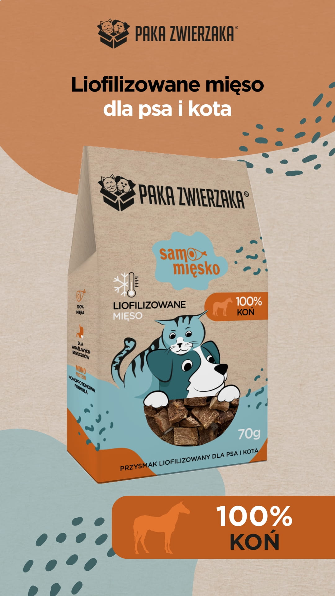 ✅ 100% mięsa z koniny – lekkostrawne, bogate w żelazo i białko